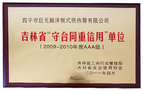 THT榮獲吉林省“守合同重信用”稱號(2009-2010年度AAA級)。 THT積極培育企業誠信文化,與廣大客戶建立了誠信平等、互惠互利、共同發展的良好關系,不斷擴大合作領域,贏得了廣大客戶的信賴和支持,受到了政府部門的肯定和表彰。